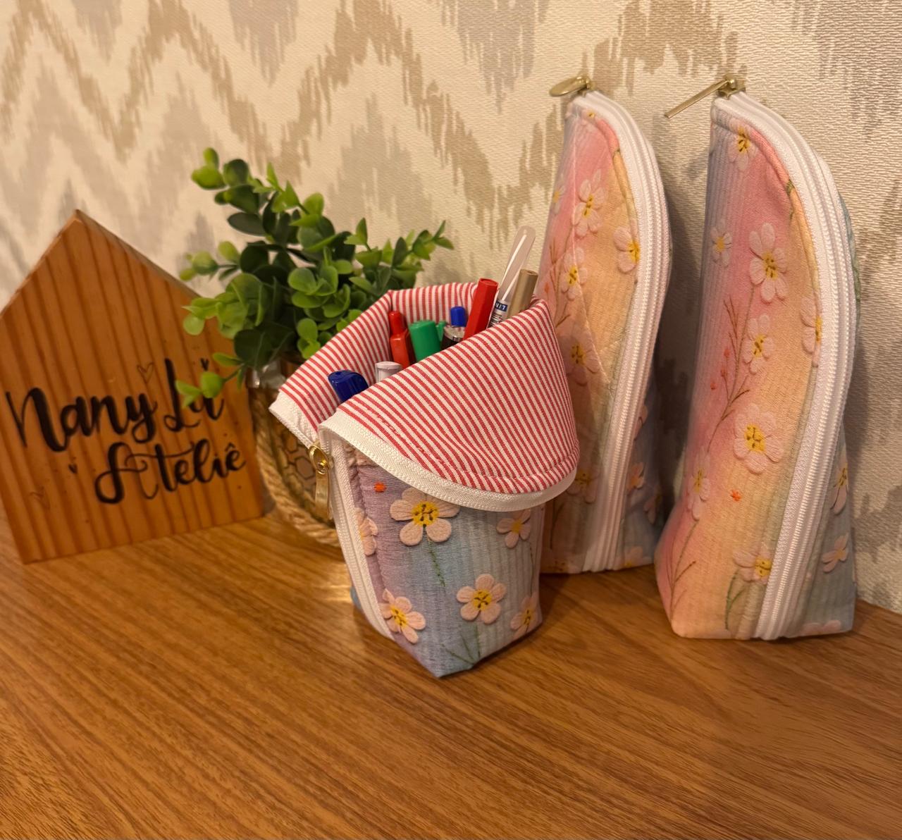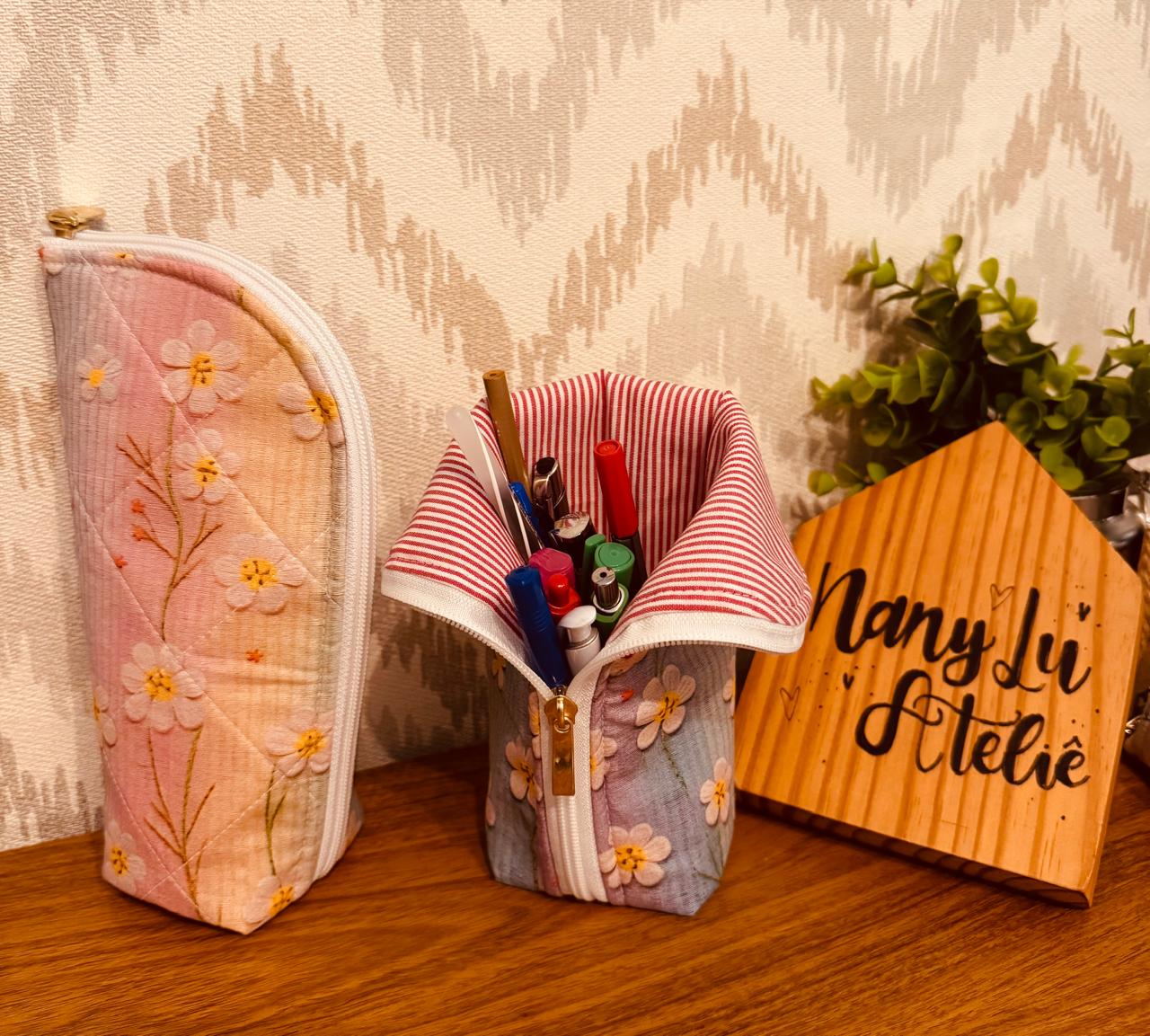 Ele é chamado assim porque quando aberto ele parece um copinho mesmo. Ele comporta muito material dentro e quando abre fica em pé para maior praticidade na hora de executar o seu trabalho.